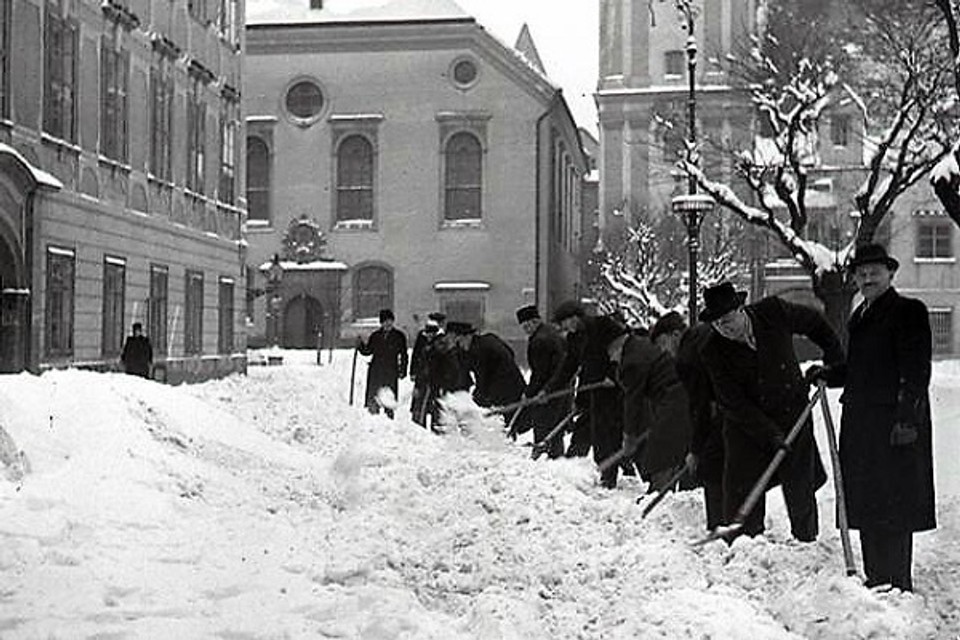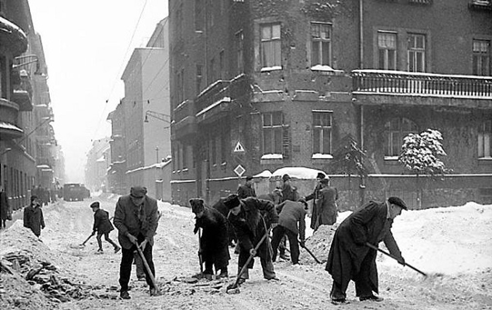 Na archívnych snímkach z 20. februára 1956 je zachytená celomestská smena v Bratislave. Na výzvu Ústredného národného výboru a Obvodných národných výborov nastúpili bratislavskí občania do brigádnických smien na odpratávanie ulíc mesta od veľkého množstva snehu.