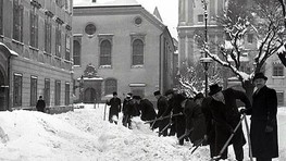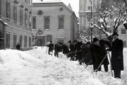 Na archívnych snímkach z 20. februára 1956 je zachytená celomestská smena v Bratislave. Na výzvu Ústredného národného výboru a Obvodných národných výborov nastúpili bratislavskí občania do brigádnických smien na odpratávanie ulíc mesta od veľkého množstva snehu.