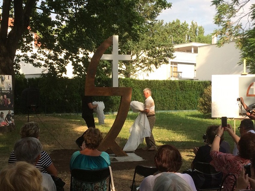 Sochu v Piešťanoch spoločne odhalili brat Antona Srholca - Michal s autorom diela Palim Bratrancom. A okrem blízkej rodiny otca Srholca sa aktu zúčastnili Dcéry politických väzňov KPVS, zástupcovia útulku Resoty, primátor Piešťan Miloš Tamajka a mnoho iných vzácnych hostí.