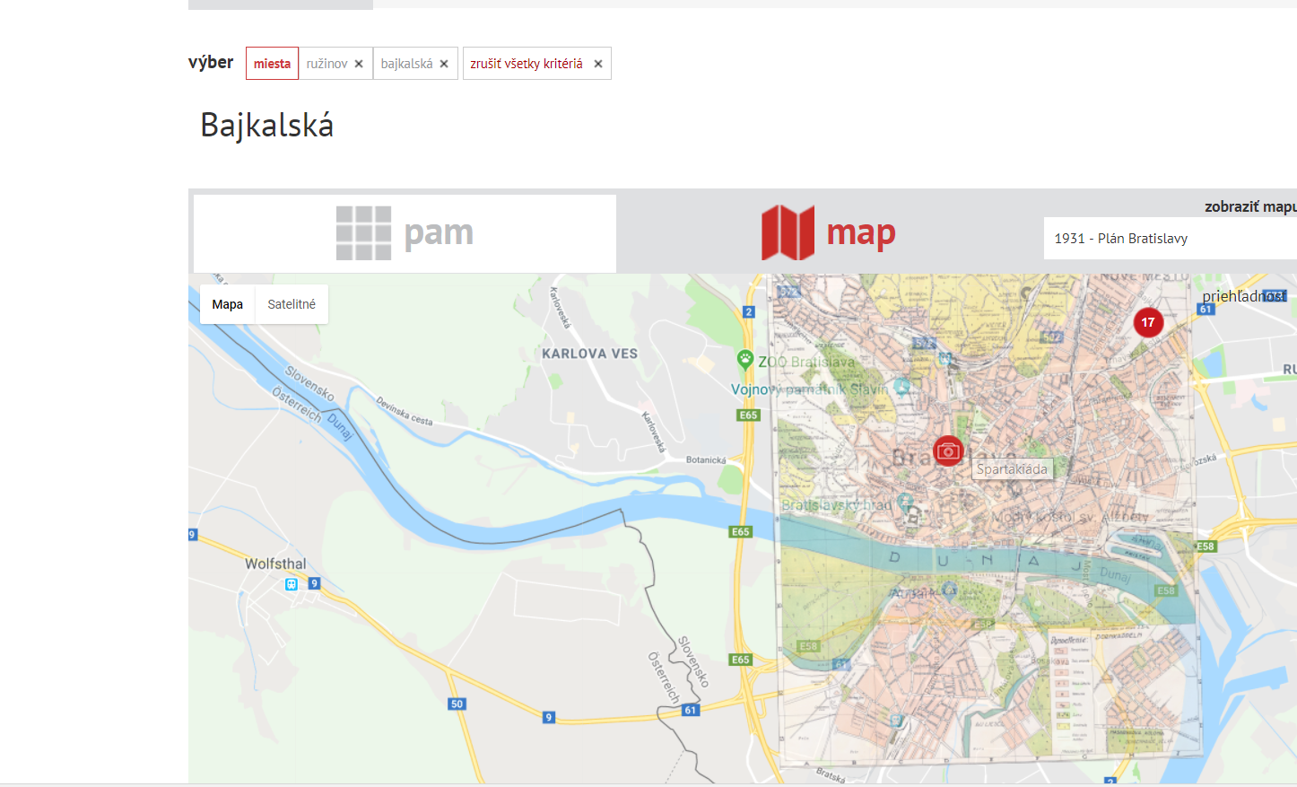 Historický atlas znamená to, že si viete informácie pozrieť aj na mape či už súčasnej alebo historickej. Historickú mapu si viete preložiť cez súčasnú a porovnávať si pamiatky či ulice súčasné či minulé.
