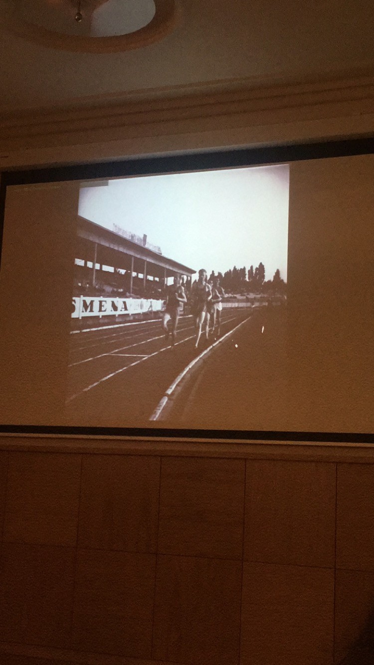 Súťaž v atletike na jednom z vtedajších športovísk na Tehelnom poli a jeden zo súťažiacich Emil Zátopek: