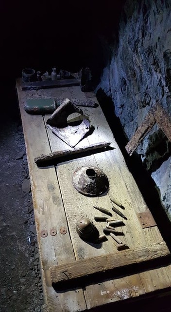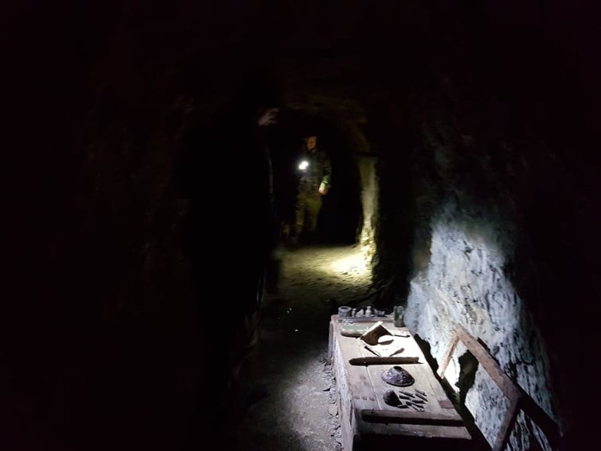 V tomto veľkom objekte sa nachádzajú až dva komíny, únikové východy. Jeden z nich, hoci optika skresľuje, meria fascinujúcich 18 metrov. Verte, že pád by ste nemuseli prežiť. V každej jednej kaverne je 7-8 stupňov. A ako hovorí Lukáš, je to presne tá ideálna teplota na správne chladené pivo. Vo vnútri podzemných objektov nájdete dobové fotografie aj rôzne predmety, ktoré sa v nich našli. Sú tu všetko predmety z obdobia prvej svetovej vojny. Niektoré našli priamo tu, iné kúpili ale im ich niekto podaroval. Túto kavernu doslova vyhrabali spod zeme. Z jej rekonštrukciou a odkrývaním histórie začali v roku 2012. Prvýkrát ju verejnosti sprístupnili po troch rokoch, keď z nej vyniesli 1200 fúrikov hliny.