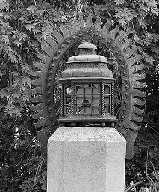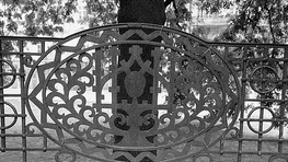Táto časť zábradlia je dnes uvoľnená a poškodená rovnako ako lampáše na stĺpoch nad schodmi, v ktorých bývali plynové horáky. V kruhových medailónoch zábradlia po stranách centrálneho motívu sú monogramy Ihs a Maria. Meno tvorcu zábradlia je na mosadznom štítku: Reimann Gyula Mulakatos Pozsony fautca 4. Bolo by načase schodisko s jeho umeleckou výzdobou rekonštruovať a lampáše oživiť.