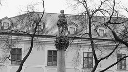 Už 325 rokov stojí na rozhraní Hlavného a Františkánskeho námestia kamenný stĺp, ktorý nesie sochu Panny Márie. Socha je zahalená bujnými korunami stromov, takže väčšinu roka ju ani nevidno.