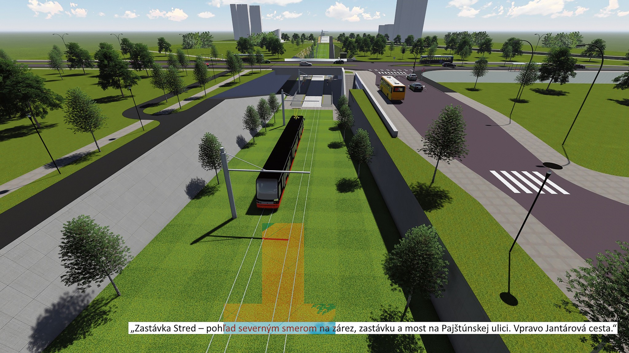 Zastávka a most na Pajštúnskej ulici, vpravo Jantárová cesta.