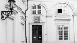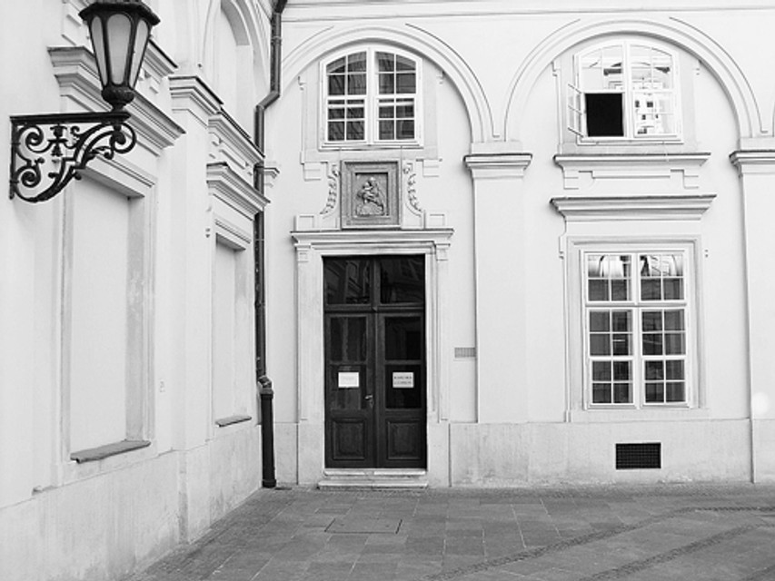 Jedinou ozdobou nádvoria boli jeho fasády oživené triezvou omietkovou architektúrou. Jediný portál, v juhozápadnom kúte, bol odpočiatku nápadnejšie sformovaný. To preto, že vedie do predsiene kaplnky bývalej zimnej arcibiskupskej rezidencie, ktorá je utajená v priečnom južnom krídle paláca. Zvonku nie je kaplnka nijako opticky zdôraznená. Ani nad strechu neprečnieva vežička, ako by sme hádam očakávali.