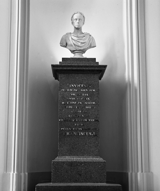 Posledný rímsky cisár nemeckého národa Franz II., ktorý sa neskôr stal prvým rakúskym cisárom, nebol v galérii panovníkov zastúpený maľovaným portrétom, ale bustou z bieleho mramoru. Stála vo výklenku v stene oproti oknám stredovekej radnej siene na vysokom žulovom podstavci.