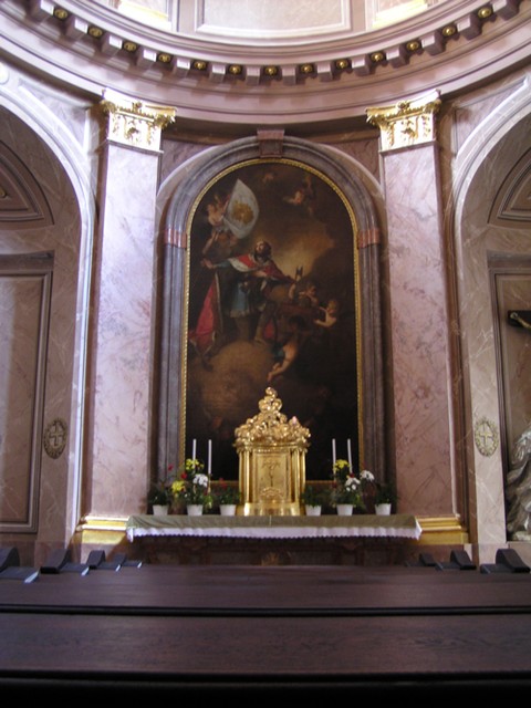 Tento uhorský kráľ z rodiny Arpádovcov ukončil podľa legendy proces christianizácie v Uhorsku. Jemu bola zasvätená už okolo roku 1450 kaplnka na tom istom mieste kde dnes. Arcibiskupov architekt Melchior Hefele zrejme rešpektoval požiadavku kardinála Jozefa Batthyanyho situovať novú kaplnku na tom istom mieste.