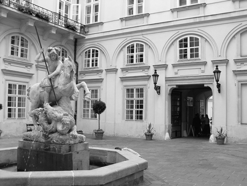 Dnes by sme mohli severné nazvať podľa súsošia svätého Juraja na fontáne nádvorím svätého Juraja, a južné podľa rekonštruovaného súsošia svätého Jána Nepomuckého nádvorím svätého Jána. Nádvoria sú navzájom prepojené prejazdom na prízemí traktu za hlavným oltárom kaplnky svätého Ladislava.