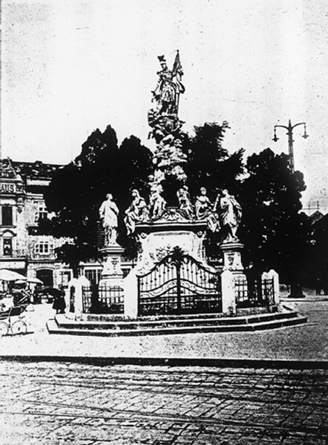 Keď už predtým mesto postavilo pred dvoma bránami pomníky morových udalostí (1713 pred Vydrickou - Viedenskou bránou a 1723 pred Michalskou bránou) prišiel rad aj na priestor pred Laurinskou bránou, na malé námestie, kam vyúsťovali Dunajská a Špitálska ulica. Tam v roku 1732 postavili súsošie svätého Floriána. Umiestnili ho na vysoký obelisk formovaný z oblakov, z ktorých vyletujú cherubíni. Na bohato riešený podstavec umiestnili 3 reliéfy so scénami zo života svätca a súsošie doplnili postavami kresťanských cností, viery, nádeje a lásky. Súčasťou kompozície bola bronzová pozlátená kartuša s mestským znakom.