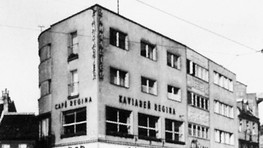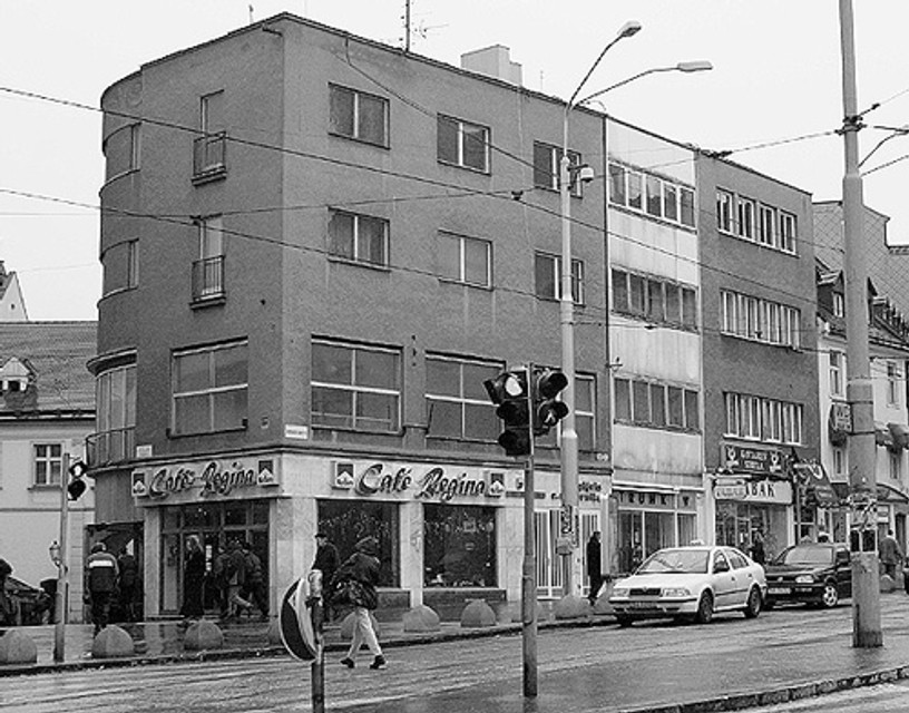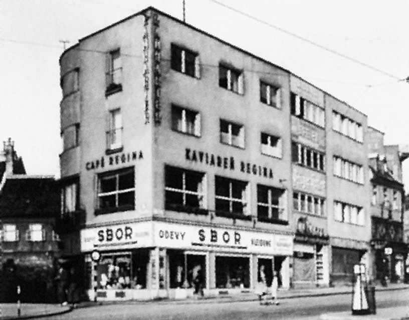 Dom pri Michalskom moste postavili až v roku 1938. Prízemie a suterén domu slúžili ako predajne textilu (Ramharter, neskôr podnik SBOR). Prvé poschodie novostavby bolo vyhradené exkluzívnej kaviarni Regina s panoramatickými pohľadmi na barokové objekty Michalskej brány a veže a na komplex kostola trinitárov. Po druhej svetovej vojne objekt znárodnili. Prízemie zariadili ako kníhkupectvo. Kaviareň ako buržoázny prežitok zrušili a namiesto nej sa do priestoru, z ktorého vyhodili aj originálne zariadenie vysokej kvality, nasťahovala „galéria grafiky“ (neskôr pomenovaná podľa grafika C. Majerníka). Dnes je priestor prázdny.