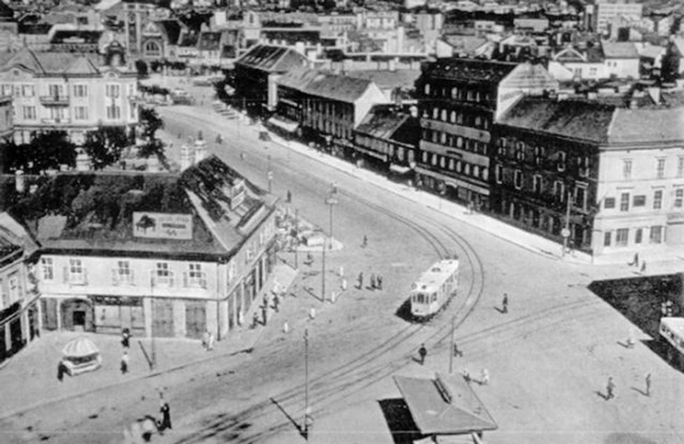 Od nášho čitateľa Jaroslava Volentiča sme do redakcie dostali fotografiu dolnej časti terajšieho Námestia SNP, ktorá mohla vzniknúť len medzi rokmi 1931 až 1934.