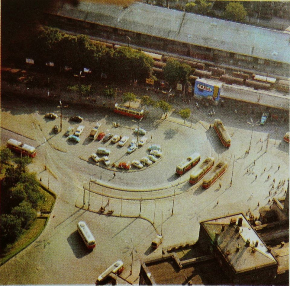 Na tejto leteckej snímke je dobre vidno celé bývalé obratisko električiek pred Hlavnou stanicou, ktoré bolo neskôr premiestnené o kúsok vedľa... Od 16. augusta 1979 sa zrušila premávka električiek na Hlavnú stanicu cez Štefánikovu ulicu. Centrum mesta tak stratilo veľmi rýchle spojenie električkami s najdôležitejšou železničnou stanicou. Náhradu zabezpečili autobusové linky predĺžené na Hlavnú stanicu.
