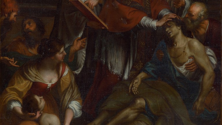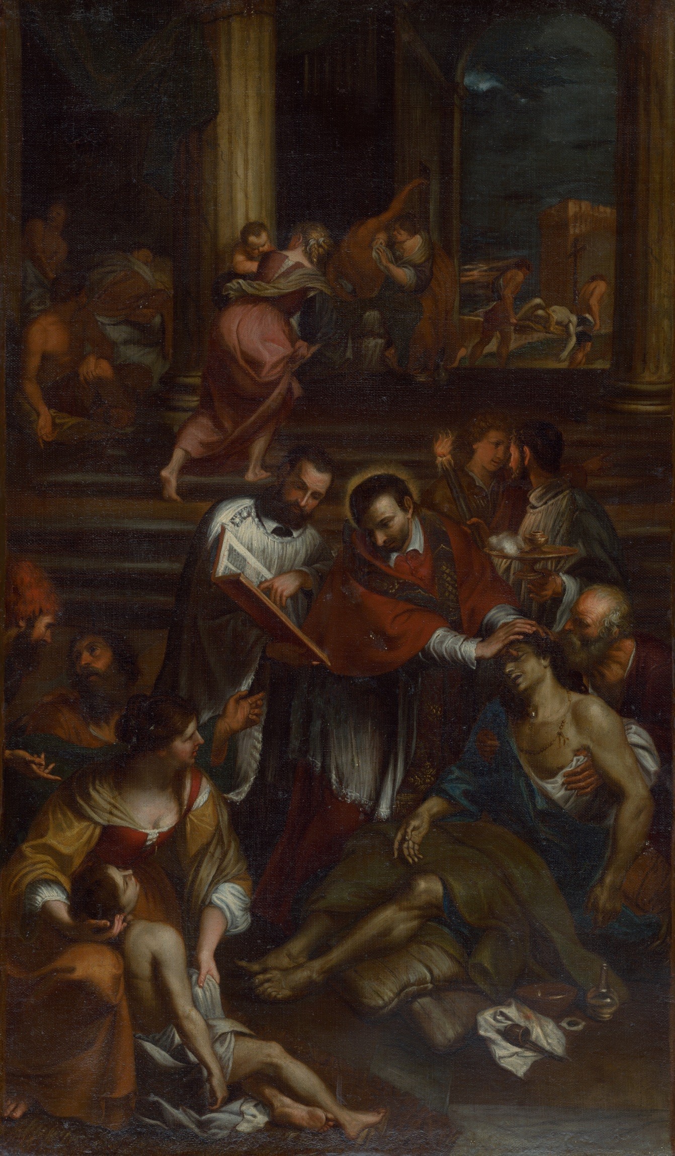 Sv. Karol Borromejský medzi chorými postihnutými morom (olejomaľba Giovanniho Bonattiho, talianskeho maliara zo začiatku 17. storočia).