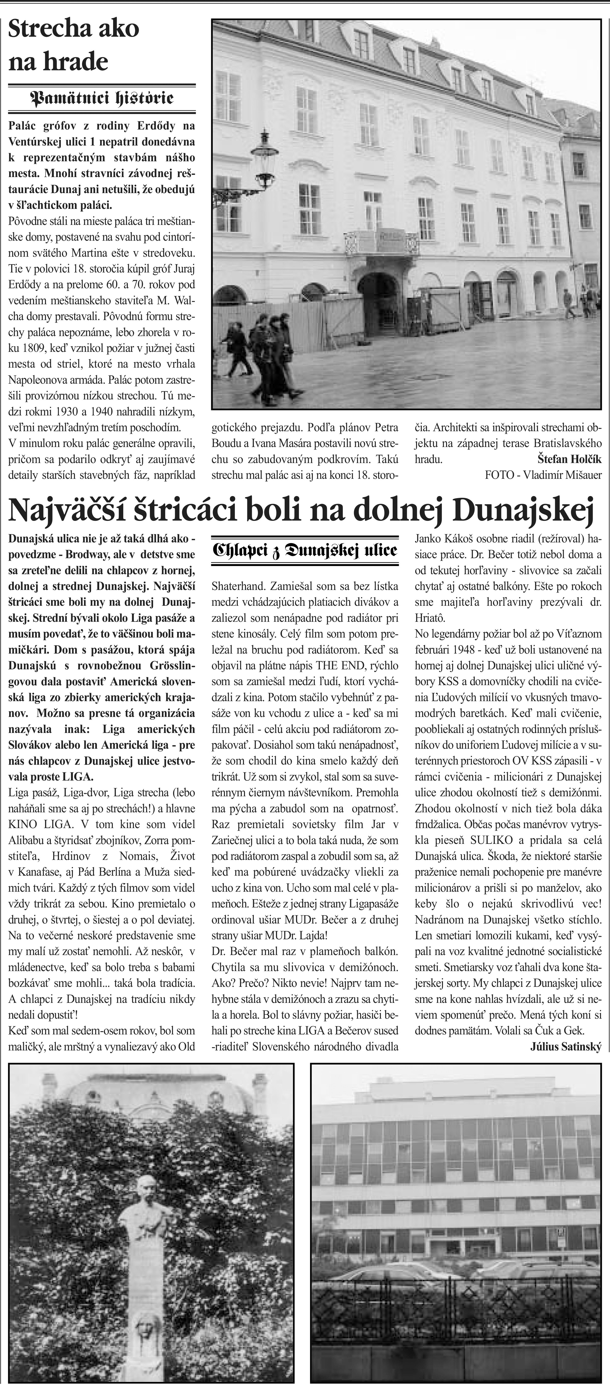 Návrat do minulosti a to hneď dvojnásobný. V našej novej rubrike NAŠA HISTÓRIA si totiž okrem dejín Bratislavy môžete s nami pripomenúť i staršie články z Bratislavských novín, ktoré píšu svoj moderný príbeh už od roku 1998 a majú už taktiež svoje dejiny.