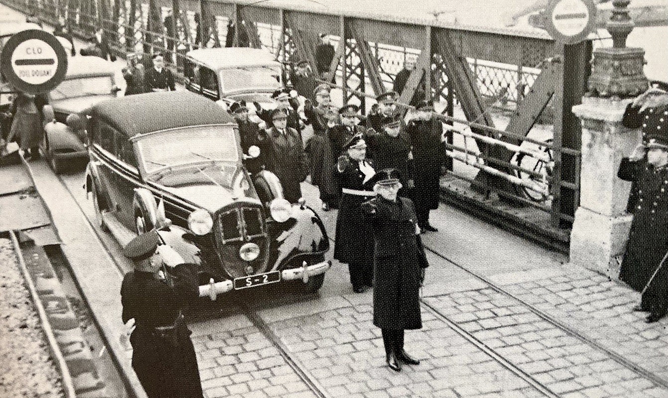 Po moste prichádzali z Ríše početné návštevy. Na fotografii návrat Vojtecha Tuku z Berlína 12.3.1939.