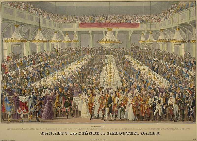 Na korunovačnej hostine sa zúčastnili stovky významných obyvateľov rakúsko-uhorskej monarchie...
