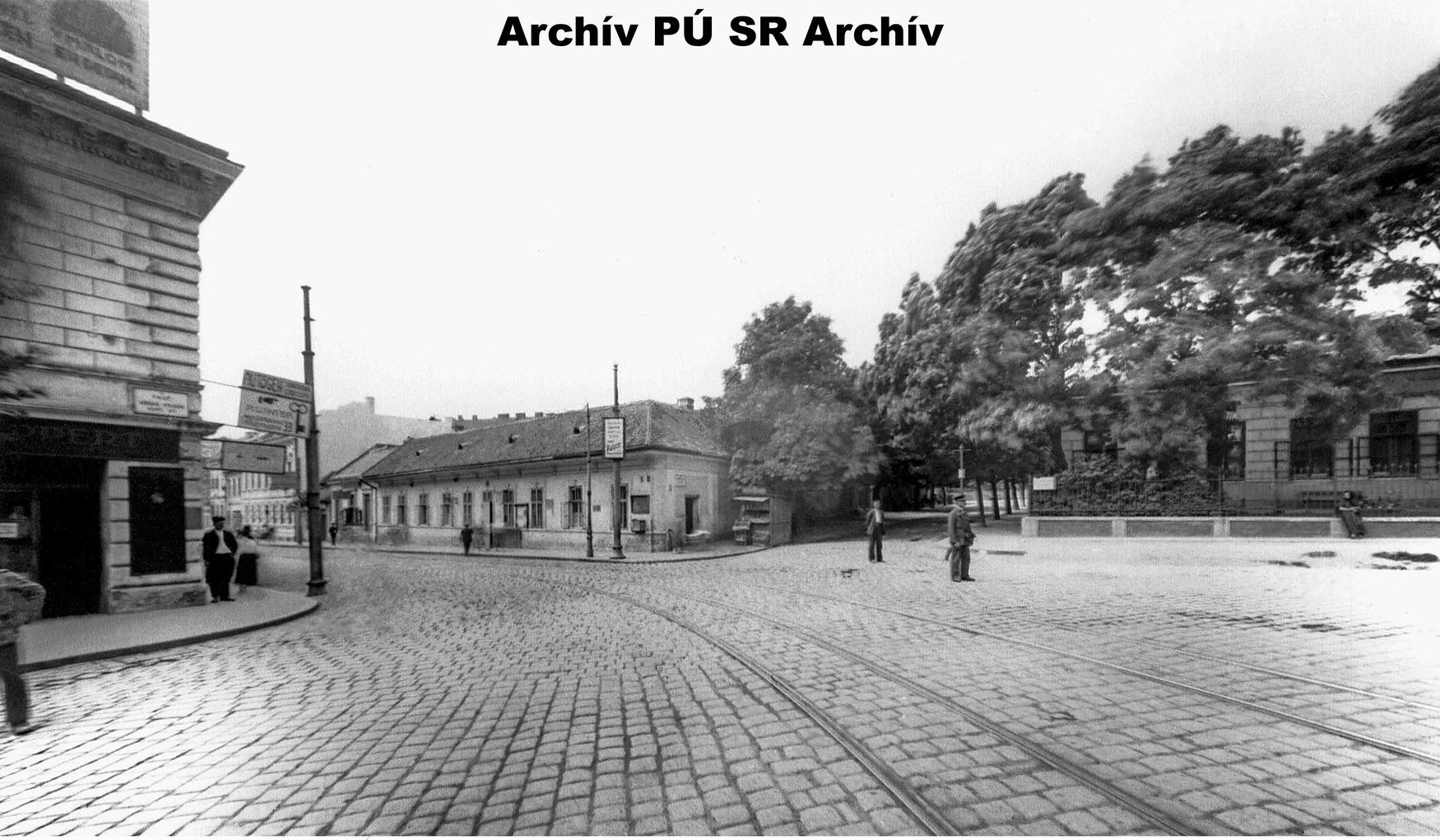 Prízemná budova uprostred, ktorú môžeme vidieť na starej fotografii, by mala byť mýtnica. Tú už nasledujúci rok zbúrali a na jej mieste vyrástla rokoch 1925-27 podľa projektu Jindřicha Merganca mohutná budova Zemskej úradovne všeobecného penzijného ústavu. Dnes tu sídli ústredie Slovenskej akadémie vied.