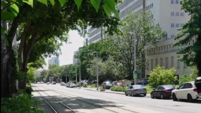 Námestie slobody, vpravo budova ministerstva dopravy.