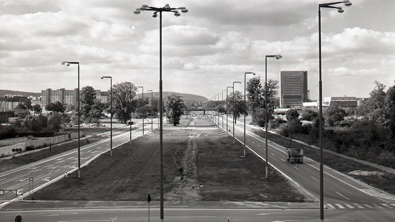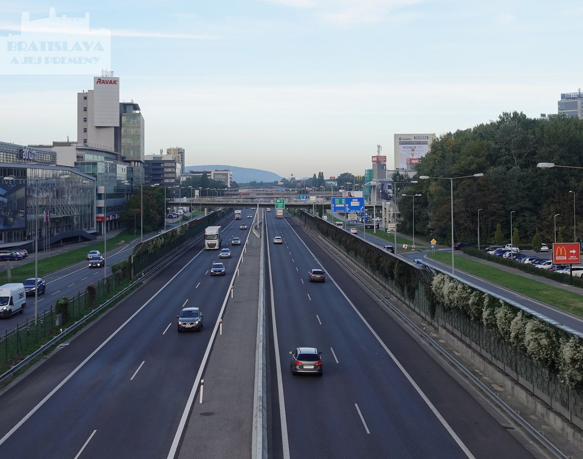 Čo sa týka Einsteinovej ulice, pod úvodnou foto k nášmu článku z 12. októbra 1989 je stručný text: „Autostrádna spojnica medzi mostom Hrdinov Dukly a mostom Mládeže na petržalskej strane Dunaja.“ Petržalský úsek diaľničného obchvatu D1 sa začal stavať neskôr, v marci v roku 2003. Ministerstvo dopravy na svojom webe v roku 2006 uviedlo aj takúto zaujímavosť: „Diaľnica má povrch z drenážneho asfaltu, ktorý na vlhkosť pôsobí ako pórovitá poduška, a zároveň znižuje hlučnosť. Musí sa však udržiavať špeciálnym strojom. Tento povrch použili na Slovensku po prvýkrát. Stavbu dali predčasne do užívania vlani v decembri, odvtedy však bolo treba vykonať ešte veľa prác.“