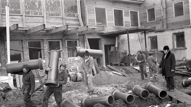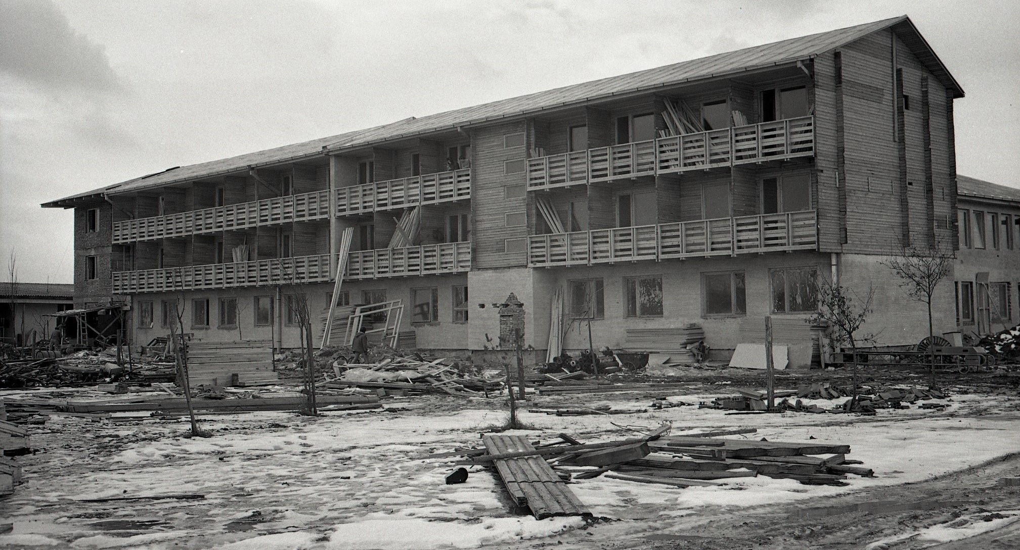 „Na stavbe nového hotela je ako na mravenisku,“ informuje text k dobovej fotografii z 2. februára roku 1973. Stavebné práce na zrubovom objekte, ktorý mal slúžiť iba dočasne, sa v tom čase pomaly blížili k záveru. Asi už viete, kde ho postavili...