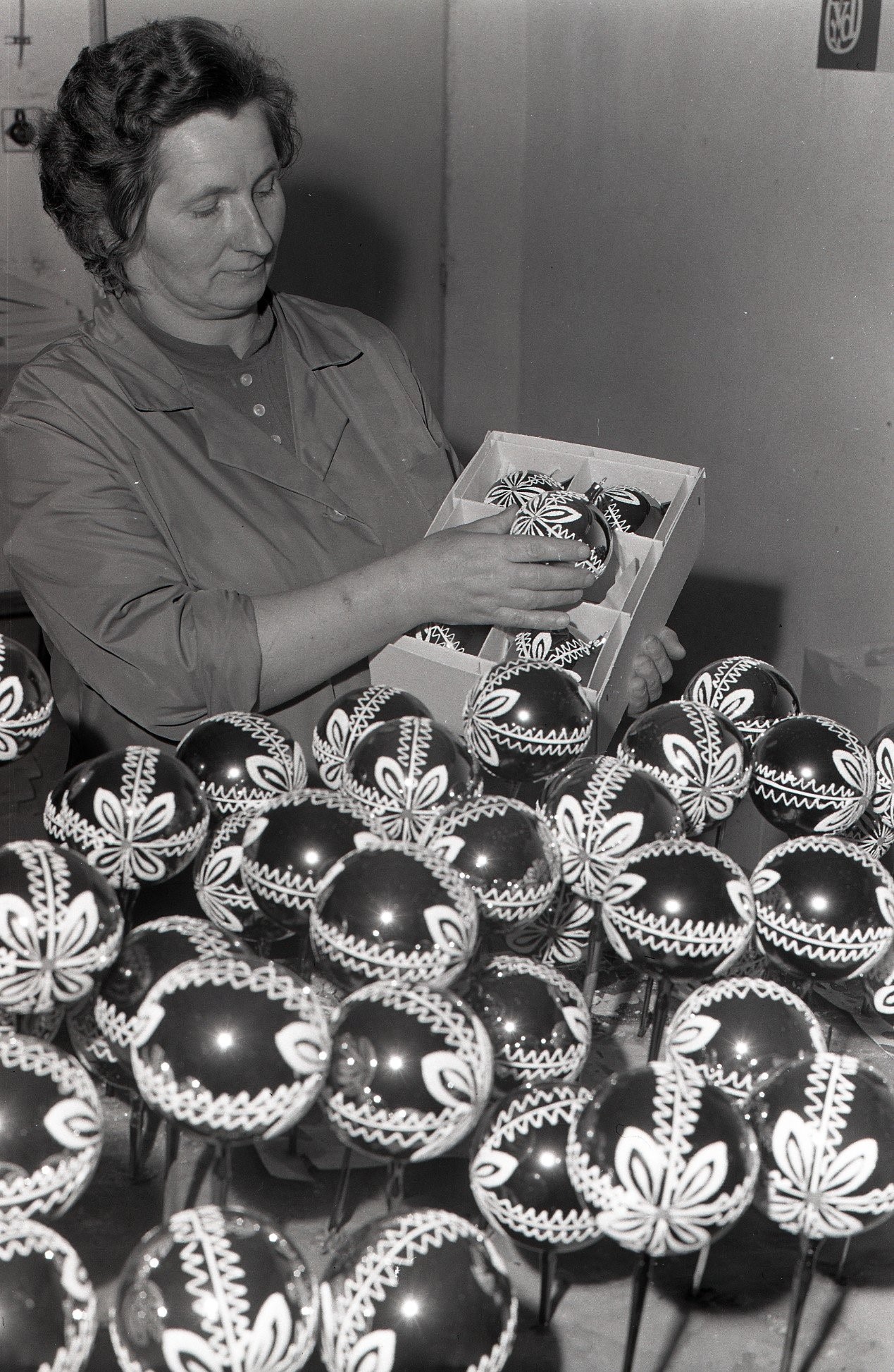 Rok 1975: Možno aj vy máte doma podobné vianočné gule... Hotové ozdoby na foto z novembra 1975 balí Anna Rogosová, pracovníčka výrobného družstva Gemer v Štítniku, odkiaľ v tom čase putovali aj do sveta, najmä do Holandska, USA, Belgicka, Maďarska a Juhoslávie.