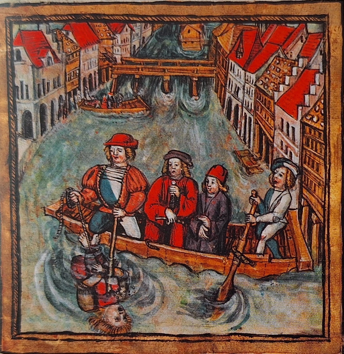 Trest smrti utopením bol v Prešporku zriedkavým ortieľom. Ilustrácia z kroniky Diebolda Schillinga ml. z roku 1513