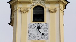 V roku 1733 vežu opravovali a celú jej fasádu upravili v barokovom slohu. Neznámy maliar vtedy namaľoval na západnú fasádu vo výške štvrtého nadzemného podlažia nové slnečné hodiny. Nimi bolo možné regulovať a kontrolovať chod vežových hodín. Keď maľbu zničil čas a poveternostné podmienky, zistilo sa na jej mieste zamurované pôvodné gotické okienko, dnes viditeľné nad mestským znakom.