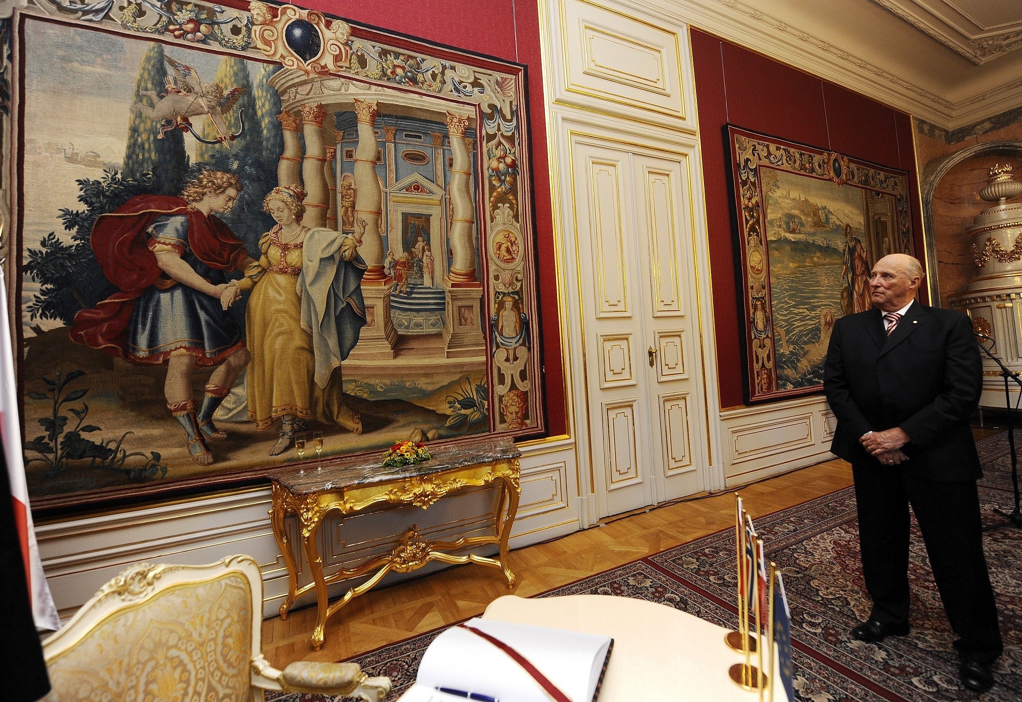 Vzácne gobelíny si pozrel aj nórsky kráľ Harald počas návštevy Bratislavy v roku 2010.