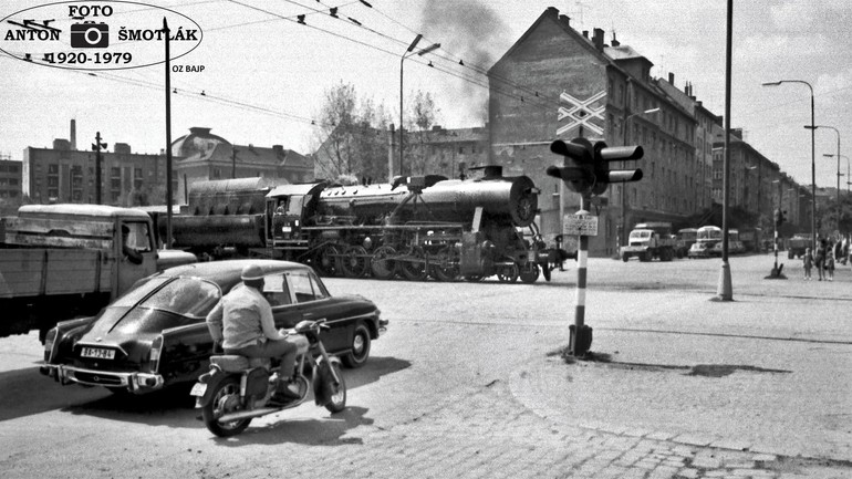 „Túto fotku som urobila pred viac ako 60 rokmi. Z Dostojevského radu chodil vlak cez Starý most do Petržalky a do Viedne. Záber je z násypu, asi z miesta kúsok od Olejkárskej ulice,“ napísala nám pani Eva, ktorá v tom čase bývala na Budovateľskej ulici na sídlisku 500 bytov.