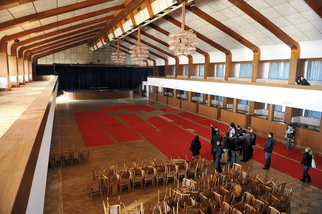 Vstup od Dunaja strážili dve sochy postáv v národných krojoch z dielne Tibora Bártfaya a nad nimi bola zakomponovaná sgrafitová výzdoba. Dlažbu vo vestibule vytvorili zo vzácneho farebného mramoru z lomu pri Lučenci a severnej strane hlavnej vstupnej haly dominovalo 28 vitrážových okien, vytvorených podľa predlohy Janka Alexyho. Na stene zas visela monumentálna maľba Dožinky od akademického maliara Františka Gajdoša.