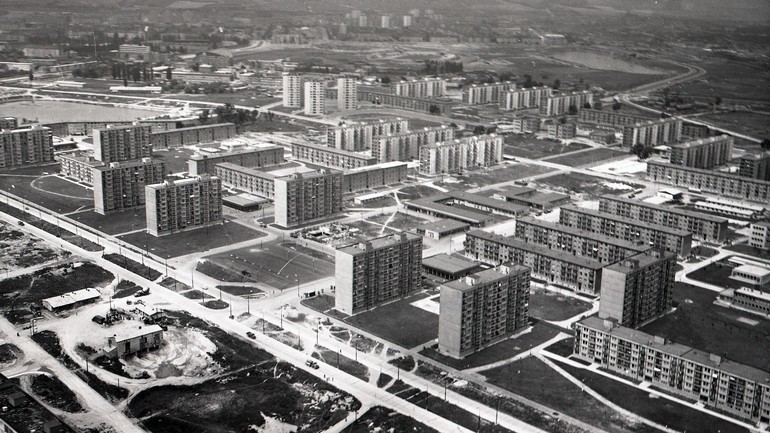 Letecký pohľad na sídlisko Štrkovec v roku 1966