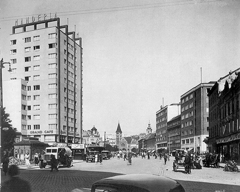 Architekt Emil Belluš vypracoval projekt na stavbu Ústredného družstva (dom číslo 13, teraz Slovenská kreditná banka). Objekt postavený v roku 1935 bol svojou architektúrou taký úspešný, že vzápätí postavili podľa projektu toho istého autora aj ďalší na nároží (dom číslo 15, pôvodne Roľnícky dom a Roľnícka vzájomná pokladnica, teraz Ľudová banka) a neskôr aj ďalší medzi nimi (dom číslo 14, teraz McDonald´s)