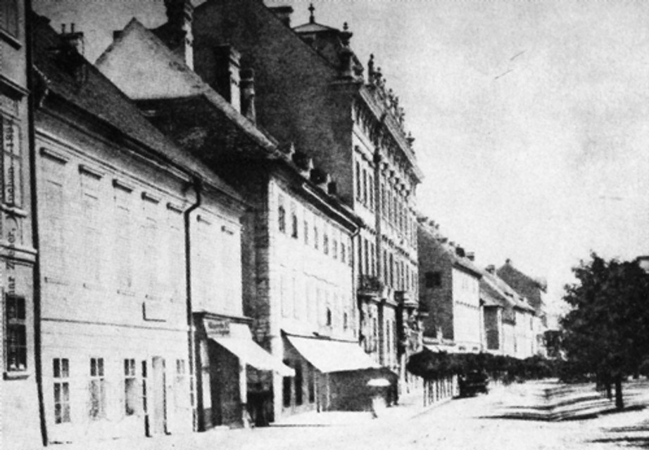 V pokračovaní historickej Ventúrskej ulice vtedy vznikla úzka „nová“, teraz Strakova ulica. Na jej mieste bol predtým úzky dvor paláca obráteného smerom k Michalskej bráne. Priečelnú časť paláca zbúrali, dvor predĺžili na juh na mieste zasypanej priekopy a ulica bola hotová. Dvorné krídlo pôvodnej stavby zachovali a pripojili k vedľajšiemu domu (terajšie číslo 27). Aj toto jednoposchodové krídlo predĺžili až na úroveň terajšieho Hviezdoslavovho námestia, vtedajšej Promenády. Na fotografii zo začiatku 20. storočia vidno, že priečelie k Promenáde (vtedy číslo 22, teraz 17) bolo riešené úplne rovnako ako fasády do uličky.