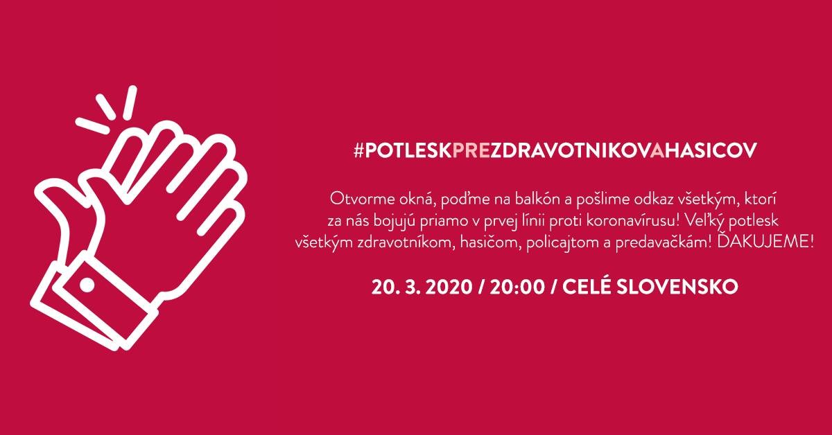 Výzva verejnosti odzrkadľuje empatiu občanov zavretých doma a rešpektujúcich preventívne opatrenia voči tým, ktorí pre dobro spoločnosti vystavujú vlastné zdravie riziku ochorenia. Ak preto v najbližších dňoch budete počuť za oknami potlesk, neváhajte a pridajte sa.