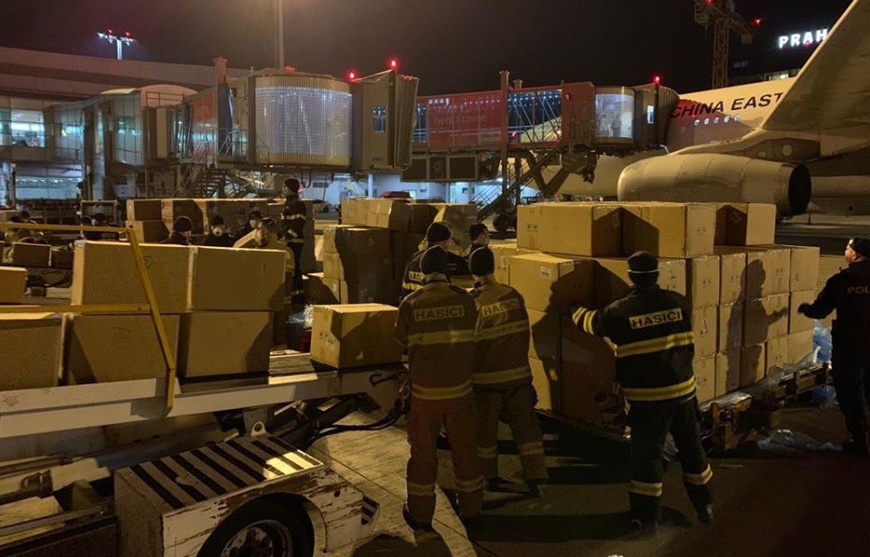 "Na Slovensko do skladov Ministerstva vnútra SR a skladov štátnych hmotných rezerv v Slovenskej Ľupči v kamiónoch v najbližších chvíľach dorazí potrebný zdravotnícky materiál, ktorý bude následne distribuovaný tam, kde je to najviac treba," povedal minister vnútra Roman Mikulec (OĽaNO). Vďaka pomoci Českej republiky, ktorá poskytla a bude poskytovať Slovensku svoje zazmluvnené letecké kapacity čínskeho leteckého prepravcu, v utorňajších skorých ranných hodinách pristálo na pražskom letisku lietadlo z Číny so zdravotníckym materiálom.