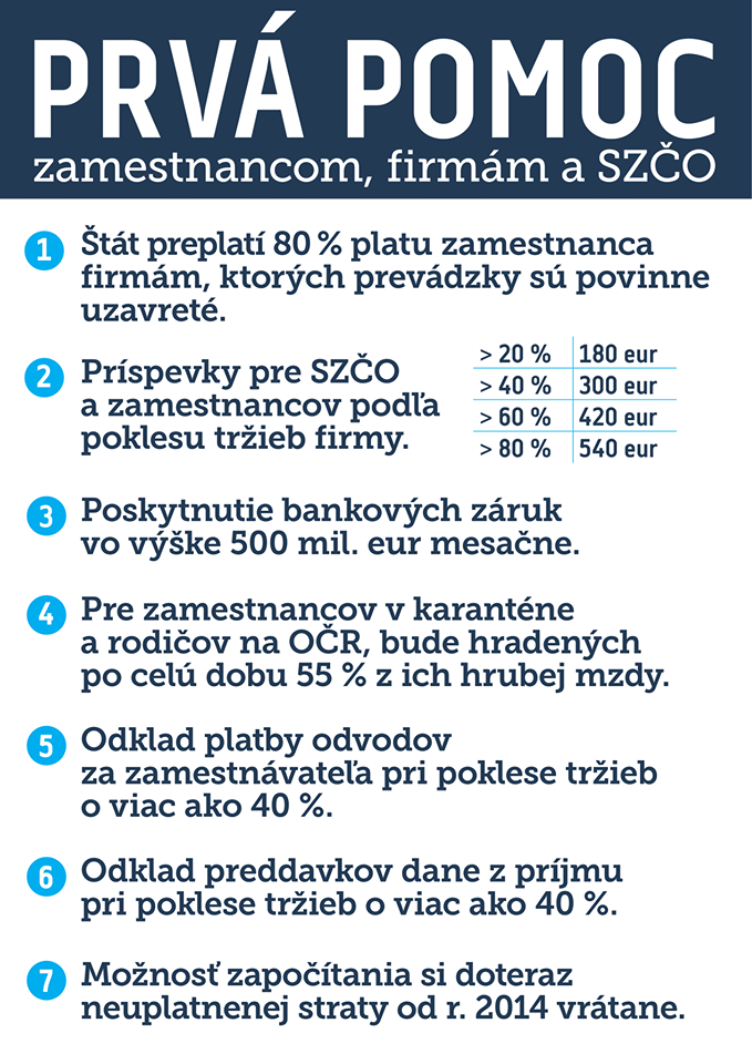 -štát preplatí 80 % platu zamestnanca vo firmách, ktorých prevádzky sú povinne uzavreté,