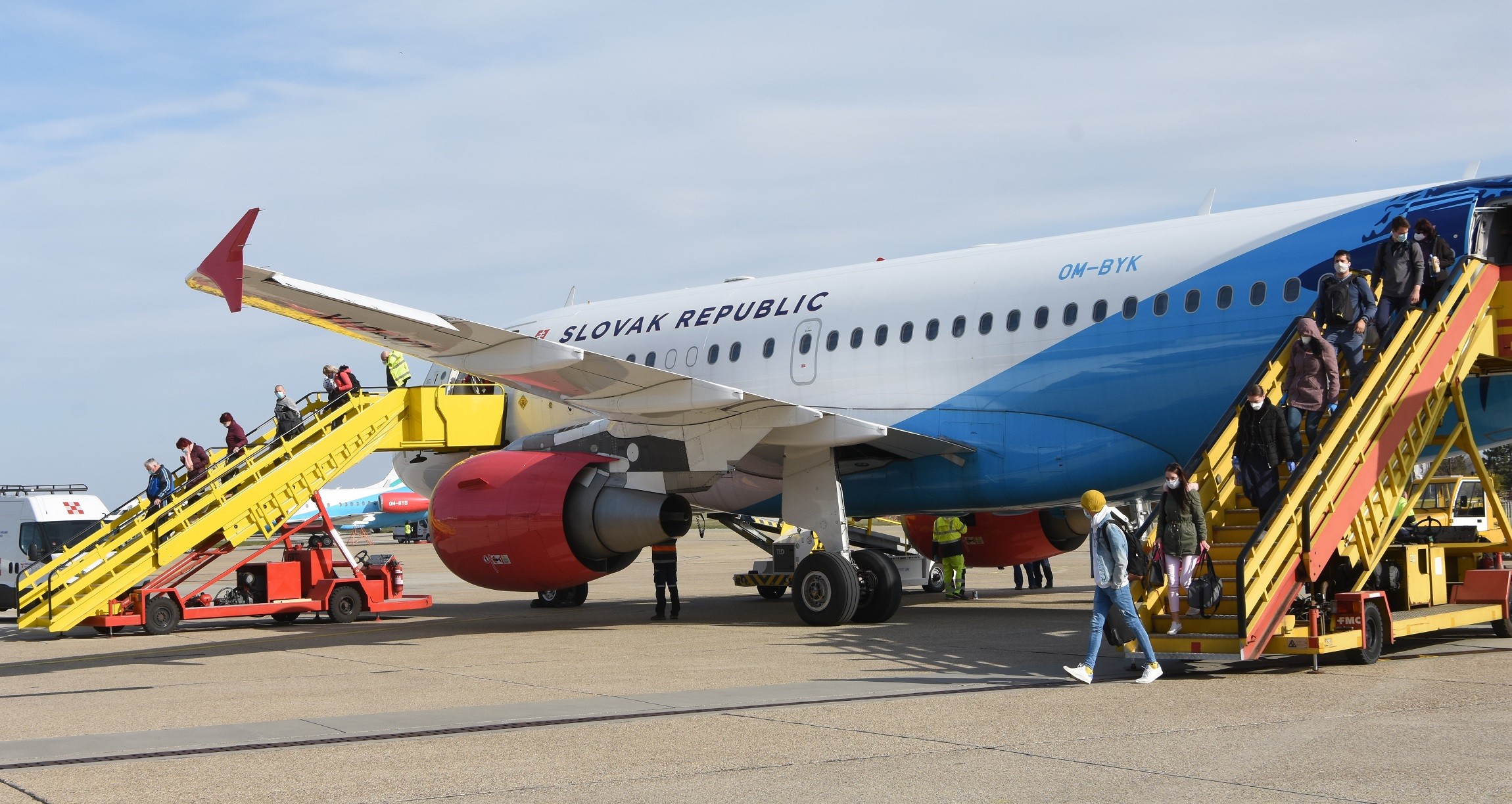 Na fotografiách lietadlá Leteckého útvaru ministerstva vnútra SR Airbus A319 a Fokker 100 dopravili z Dublinu a Helsínk spolu vyše 80 slovenských občanov na bratislavské Letisko M. R. Štefánika v pondelok 30. marca 2020.