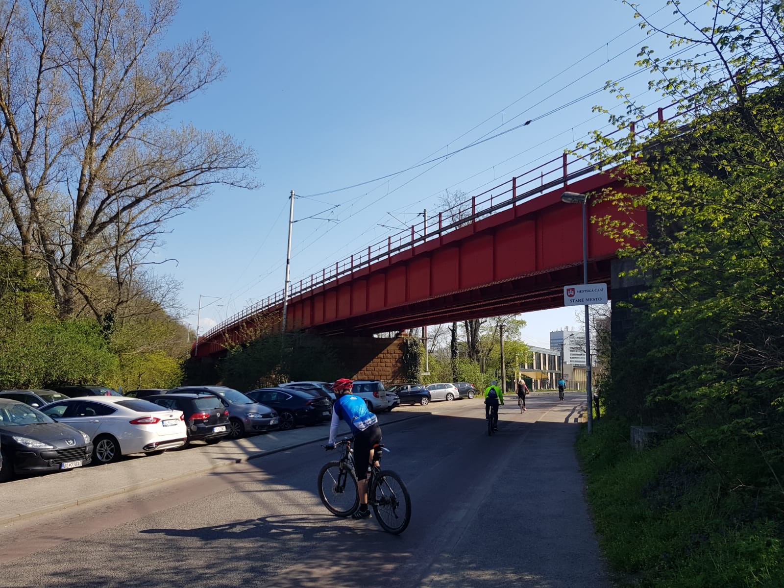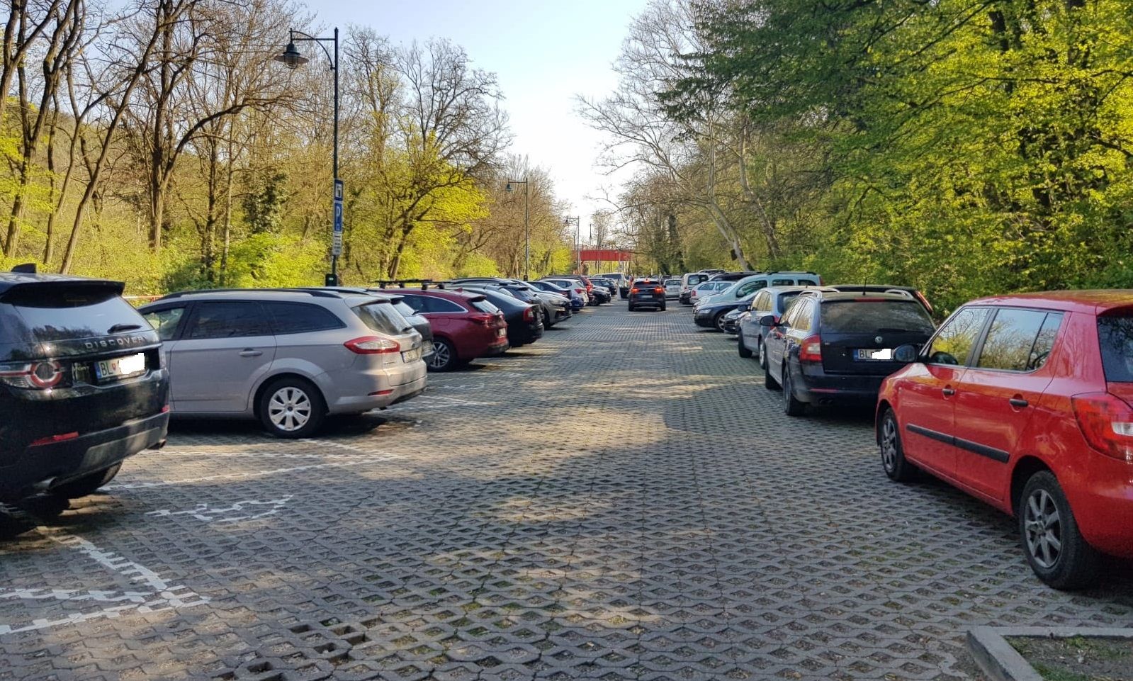 Množstvo zaparkovaných áut pri Červenom moste...