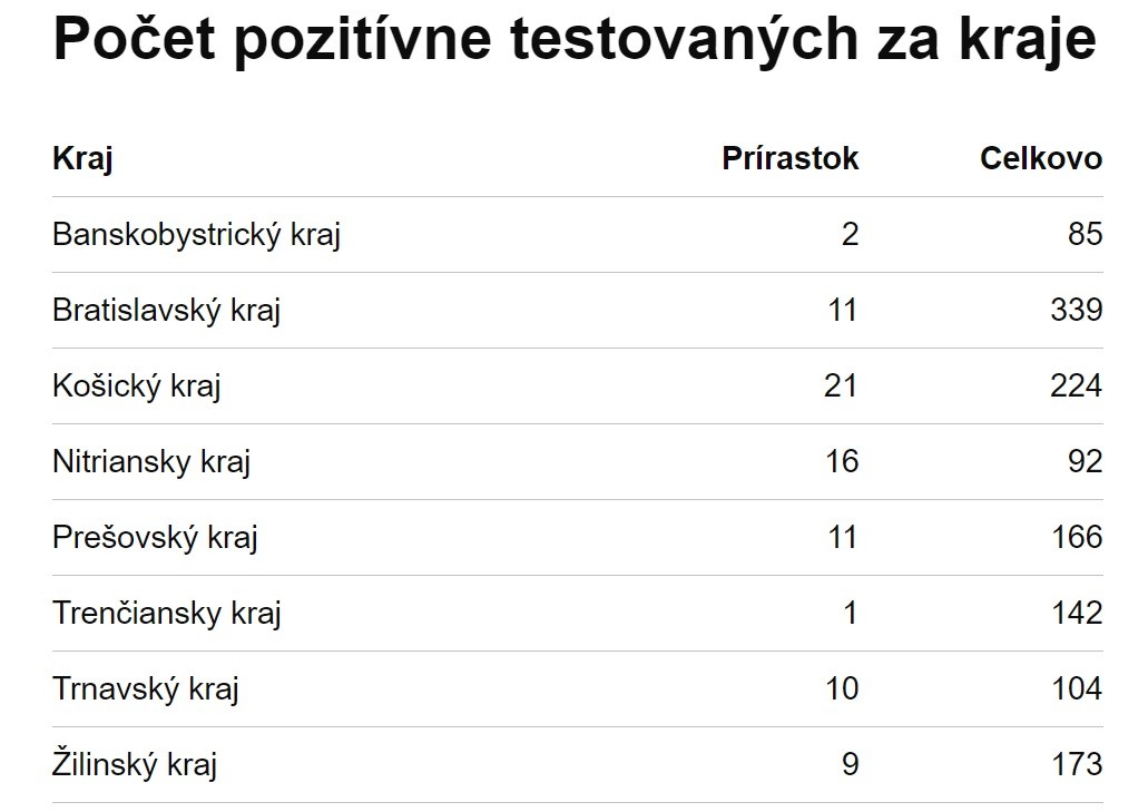 V Bratislavskom kraji včera pribudlo 11 pozitívne testovaných, celkovo ich je tak 339.