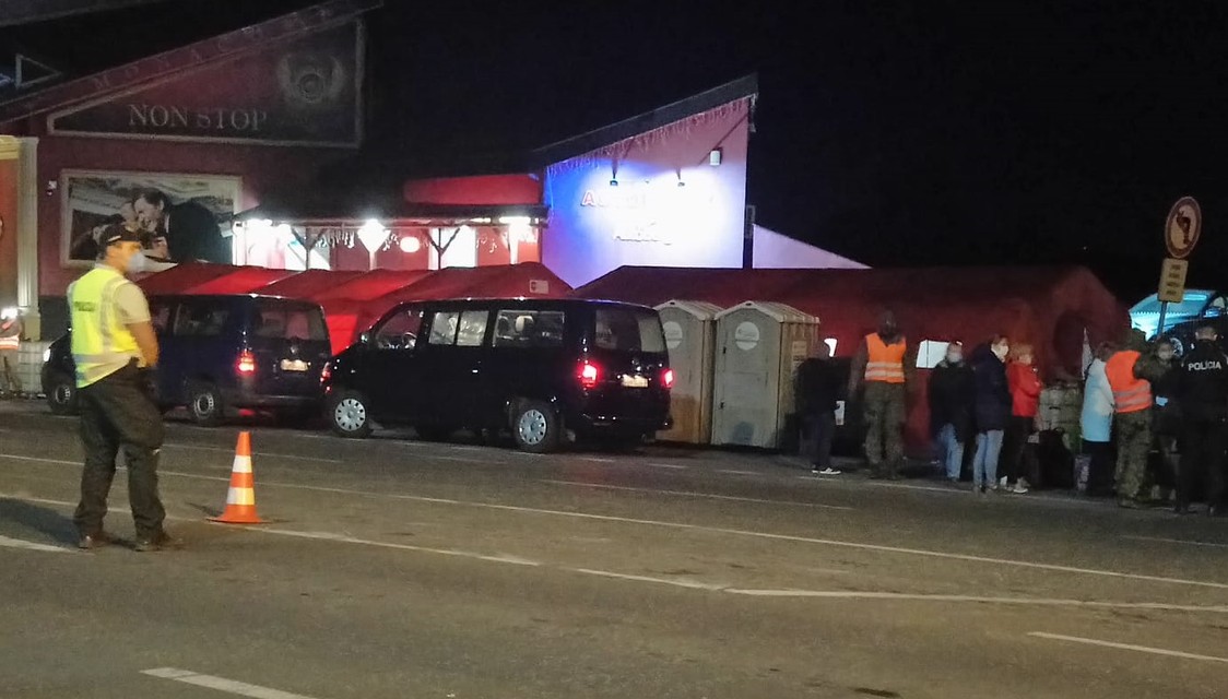 Večer pred 21.30 h. bola prišli dodávky, ktoré mali čakajúcich, pokiaľ sa nepreukázali negatívnym testom, odviezť do karantény. Ich nervozita narastala, policajti ich vyvolávali po menách.