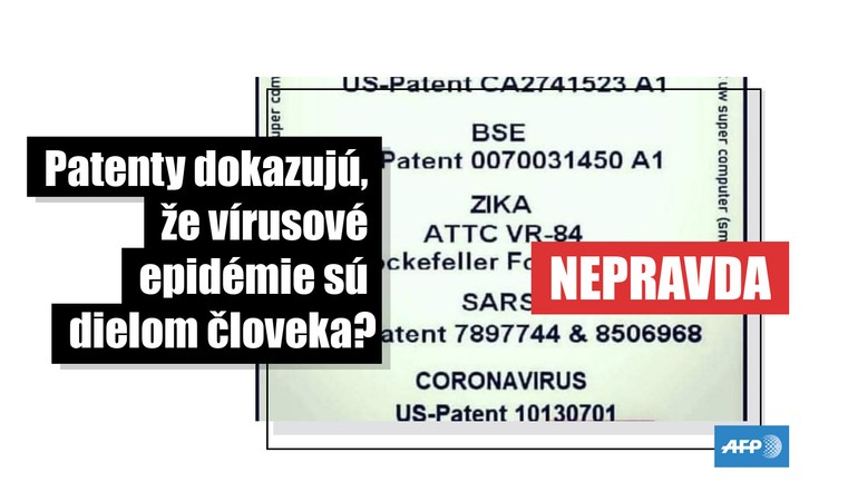 Dezinformáciu vo februári 2020 vyvrátil aj britský fact-checkingový portál fullfact.org. Príspevok, ktorý bol na slovenský Facebook nazdieľaný 14. apríla 2020 tvrdí, že nový koronavírus, ako aj staršie vírusy, ktoré spôsobili veľké epidémie, boli umelo vyrobené. Obsahuje aj obrázok s číslami patentov a jeho popisok uvádza: "Keď je na niečo patent, je to dielo človeka. Tieto vírusy nevytvorila príroda, inak by na ne nemohol byť udelený patent."