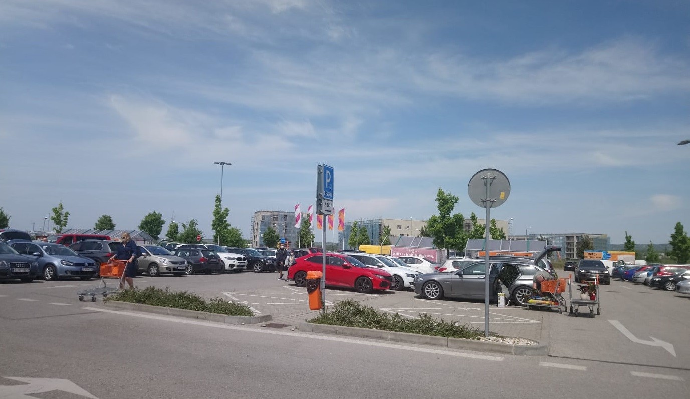 Z Karlovej Vsi sme sa najskôr vybrali na západnú časť Bratislavy, teda do Lamača, neďaleko ešte stále zatvoreného nákupného centra. Viaceré prevádzky však už otvorili. Najskôr sme sa pozreli na obchod so stavebninami i iným materiálom (záhrady zariaďovanie domácnosti). Parkovisko bolo úplne plné.
