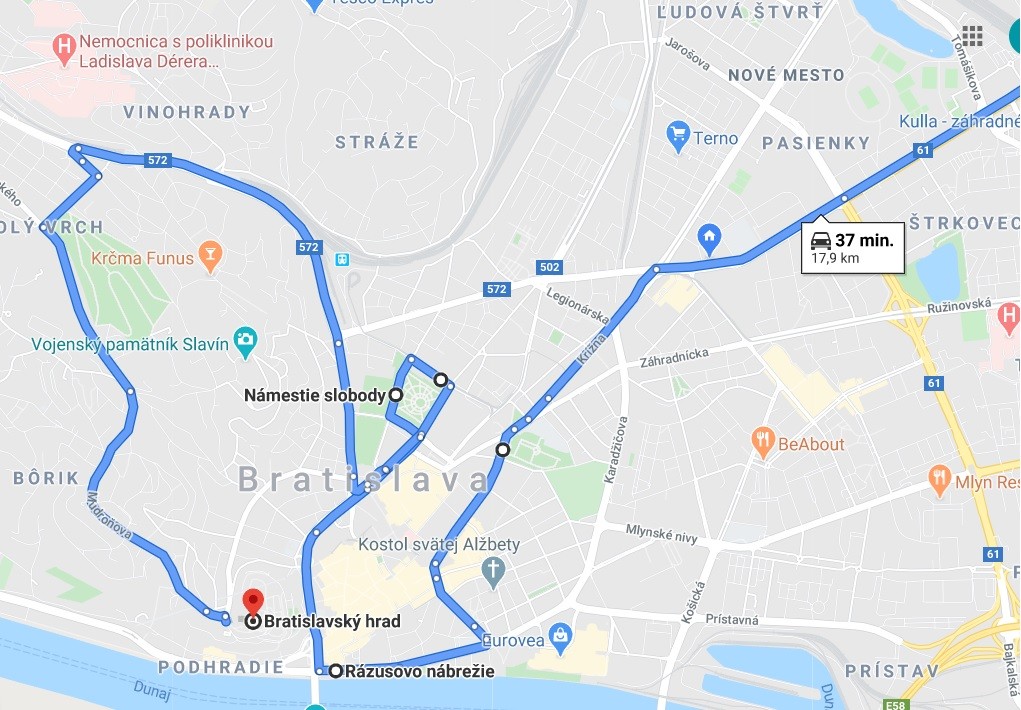 Autobusy prišli do Bratislavy smerom od Zlatých pieskov, prešli cez Rožňavskú, Trnavskú a Krížnu k Eurovei, prešli po Vajanského nábreží k Mostu SNP a odtiaľ obkrúžili Úrad vlády na Námestí slobody, ako aj Prezidentský palác na Hodžovom námestí a cez Štefánikovu a Pražskú sa dostali až do Horského parku, pričom cieľ mali stanovený pri budove parlamentu na Mudroňovej ulici.