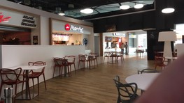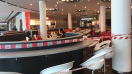 Aj v Centrali boli všetky prevádzky otvorené, platí to aj o food courte. Tu však boli ohradené miesta na sedenie v strede, kde zrejme nie je možné dodržať bezpečné rozostupy.