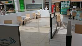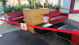 Jedno z nariadení, ktoré musia centrá dodržiavať, je zrušenie všetkých miest na sedenie (netýka sa to fast foodov a reštaurácií). Prenosné sedenie musí byť odstránené, pevné ohradené páskou.