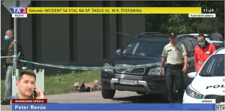 AKTUALIZOVANÉ Policajné hliadky zasahovali vo Vrútkach, kde došlo k napadnutiu pracovníkov školy aj detí mladým mužom. Jedna dospelá osoba po jeho útoku zahynula a privolaní policajti museli voči útočníkovi použiť donucovacie prostriedky, vrátane služobnej zbrane a útočníka zastrelili.