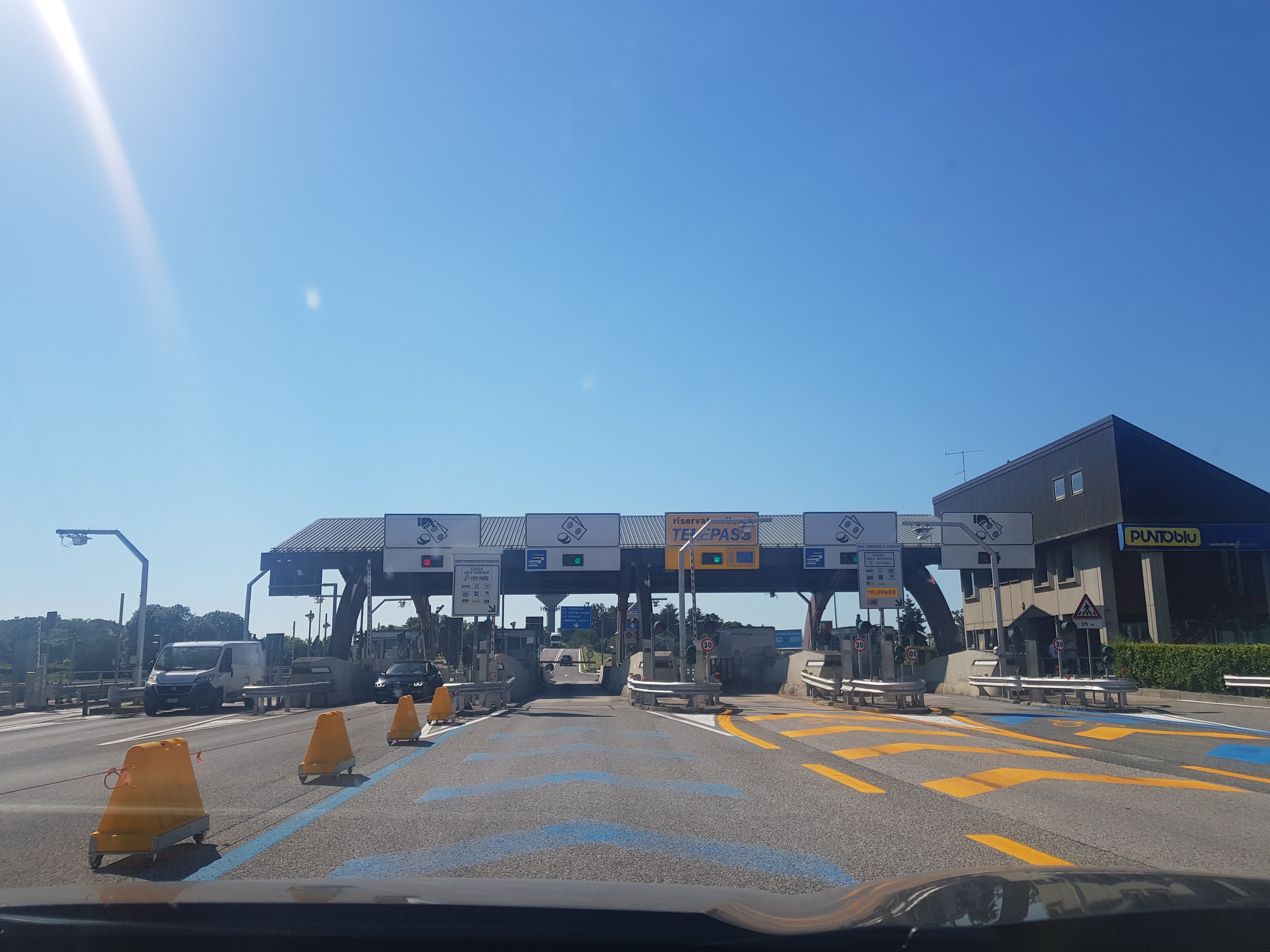 Prišli sme na hranicu s Talianskom, ani tam nás však opäť nikto nekontroloval. Pri prvej mýtnej bráne v smere do Udine stála policajná hliadka a najskôr to vyzeralo, že autá zastavujú a následne podrobujú kontrole, ale prešli sme bez zastavenia a bez problémov. Autá nestáli nikde v kolónach.