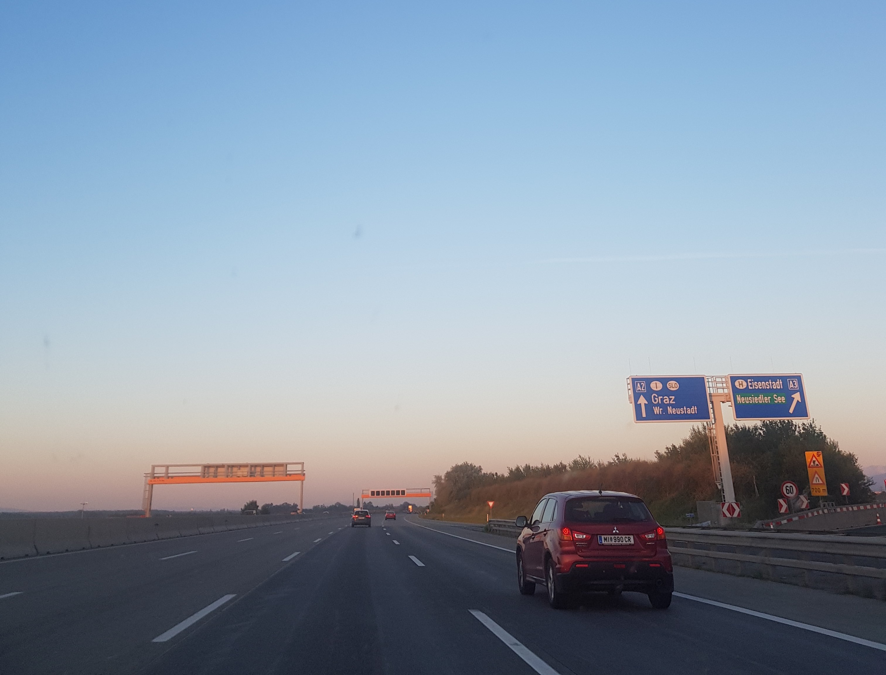 Ráno sme vyštartovali približne o 4.30 hod. Na hraničnom priechode Bratislava - Jarovce nás nikto nekontroloval a o takej skorej rannej hodine tam takmer ani nikto nebol.