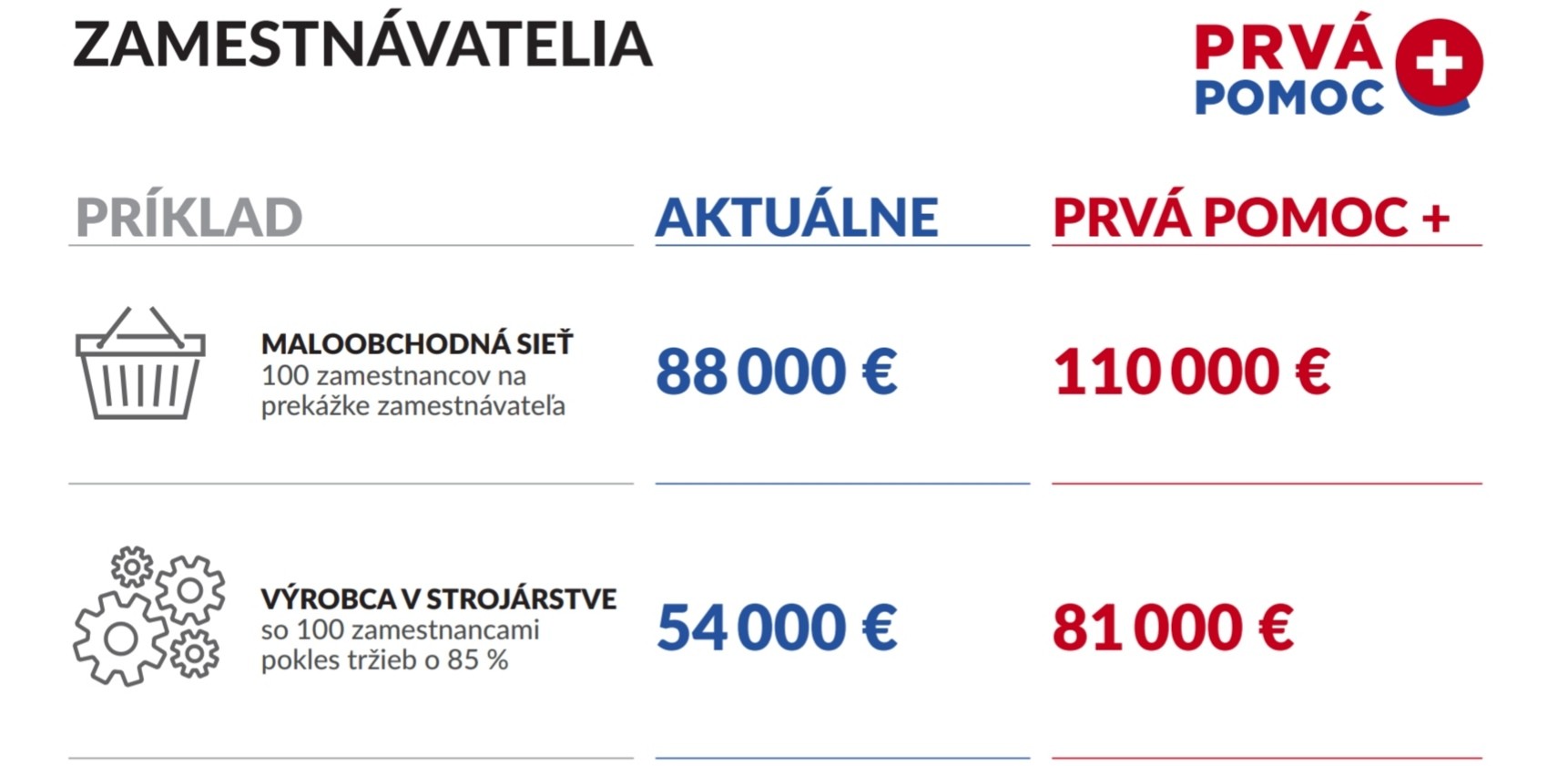 "Pri poklese tržieb bude príspevok na jedného zamestnanca 810 eur. Všetko sme vynásobili 1,5-krát," spresnil Krajniak. Podľa jeho slov pre SZČO pri poklese tržieb bude tiež maximálna pomoc 810 eur. "Túto pomoc budú môcť žiadať ľudia od 1. októbra, aby vyplatená suma bola čo najvyššia," hovorí minister.
